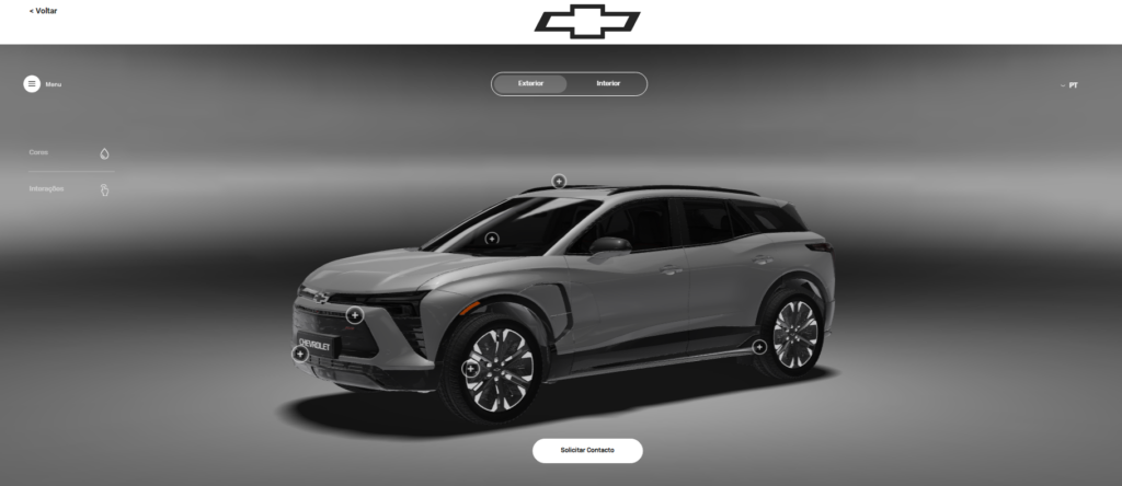 Para produtos de alto valor como veículos, o 3D permite uma exploração profunda. O cliente pode: